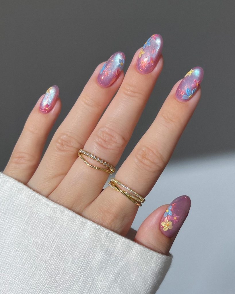 A: Summer shell nails are a trending nail style that mimics the iridescent glow and texture of real seashells, often using pearly polishes, pastel shades, or 3D accents.