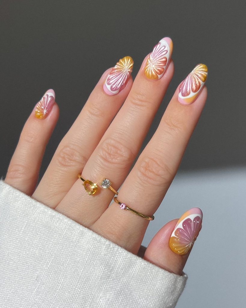 From beach vacations to summer festivals, shell-inspired nail designs go with everything. They pair beautifully with breezy dresses, swimsuits, and boho summer outfits. Whether you love short natural nails or dramatic almond-shaped acrylics, this look works for every nail length and shape.